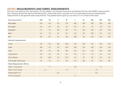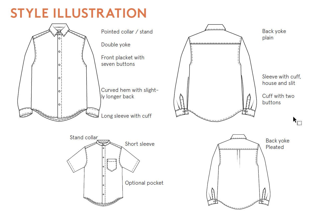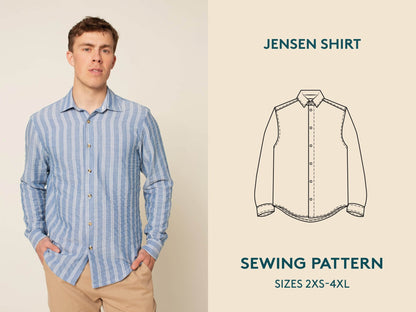 The Jensen Shirt sewing pattern also includes important features such as a collar with stand, front button placket, cuffed sleeves with binding, and a stylish curved hemline. You can print the pattern on A4, Letter, or A0 format, and it includes seam allowances for your convenience.
