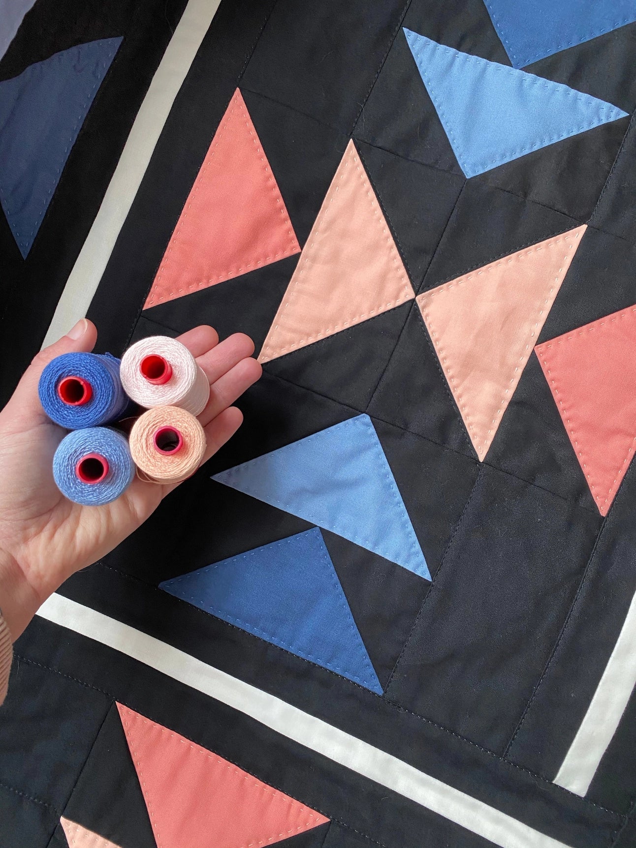 This modern, original quilt pattern is appropriate for intermediate quilters (or confident beginners!). This pattern utilizes a large 18" block design and includes instructions for the following sizes: