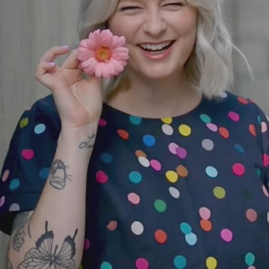 The Lanti Swing Dress is a versatile design that features three fun options to suit your individual style and taste: A flirty smock dress with gathered waist, a sleek A-line dress with pockets, and a basic top that will be a wardrobe staple. You also have the option of adding short sleeves with a band or 3/4 sleeve with a frill. This pattern includes side darts, faced neckline and a back button closure for ease of wear. This is a perfect learn the basics of dressmaking' pattern to start building or adding to your me-made wardrobe.
