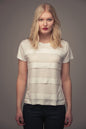 Laurie is a plain and simple, straight-cut T-shirt with fun, wide pleats in the front. This hip-length t-shirt features short sleeves and a neckband.