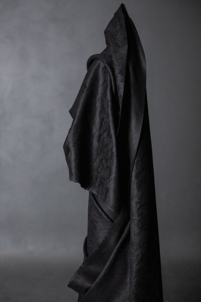A luxurious black wool with a bushed like finish on one side. Super soft to touch, this coating would be ideal for our Sanda coat or any other weighty winter coats.