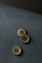 18mm recycled resin button with 4 holes. A sludgy olive green.