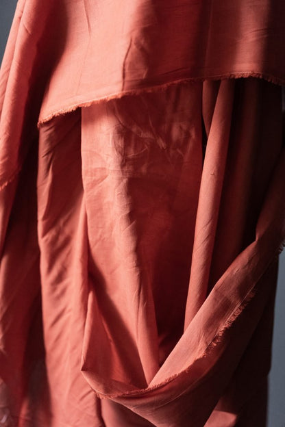 An organic cotton voile which is soft, lightweight, and comfortable on the skin. A rich brick red.