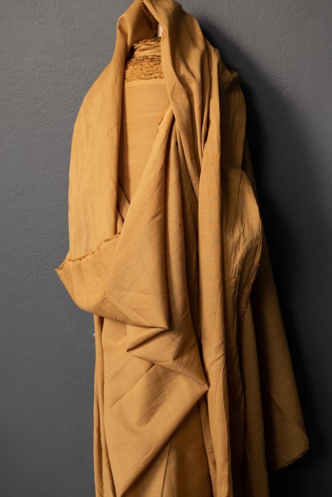 An organic cotton voile which is soft, lightweight, and comfortable on the skin. A warm amber/ochre shade.