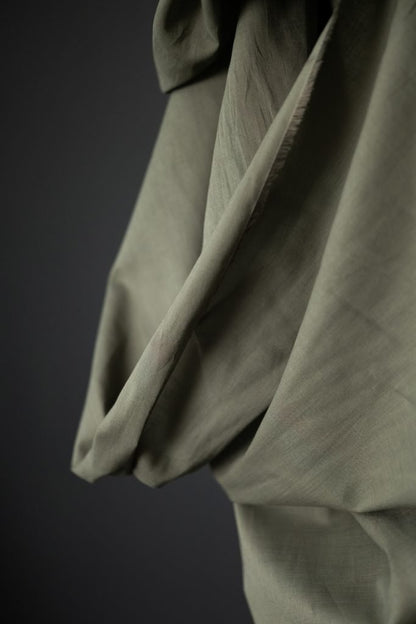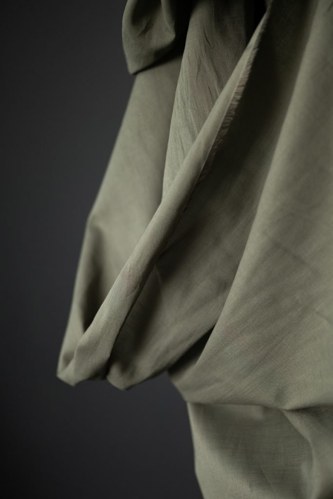 An organic cotton voile which is soft, lightweight, and comfortable on the skin. A sage green.