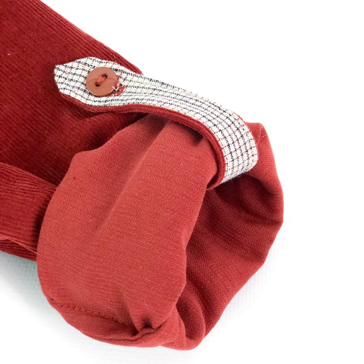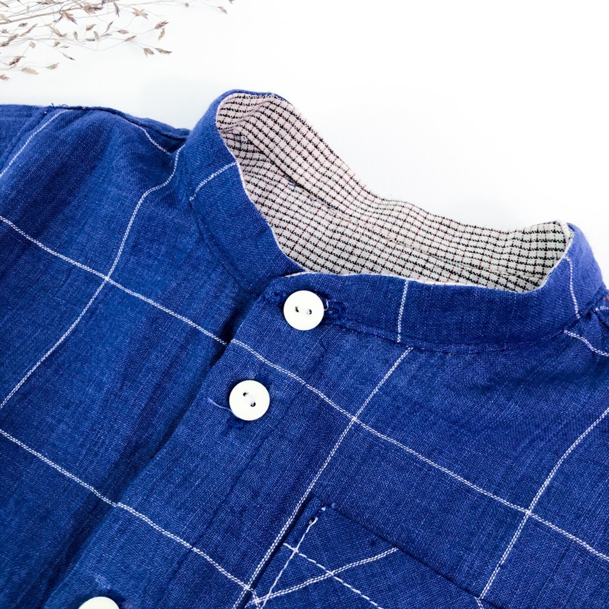 Poplin, cotton batiste, plumetis, chambray, gingham, fashioned, seersucker, cotton, linen. Cuffs, collar, back yoke and button placket linings are made of contrasting fabric (scraps can be used).. Trims: fine thermo-adhesive fabric, 10 mm buttons or snaps