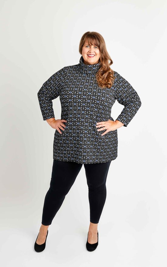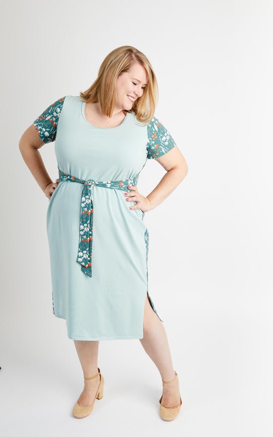 Take on your day with the Pembroke Dress & Tunic! This iconic T-shirt dress, is designed for curves, with cup sizes from C – H. Customize your own look, with midi or tunic lengths, a modern split hem detail and an optional waist tie. Then choose from three neckline options (scoop, jewel, or turtleneck) and either cuffed or hemmed sleeves. Whether made up in a lightweight ponte or flirty floral jersey, there’s nothing basic about this curvy wardrobe essential!
