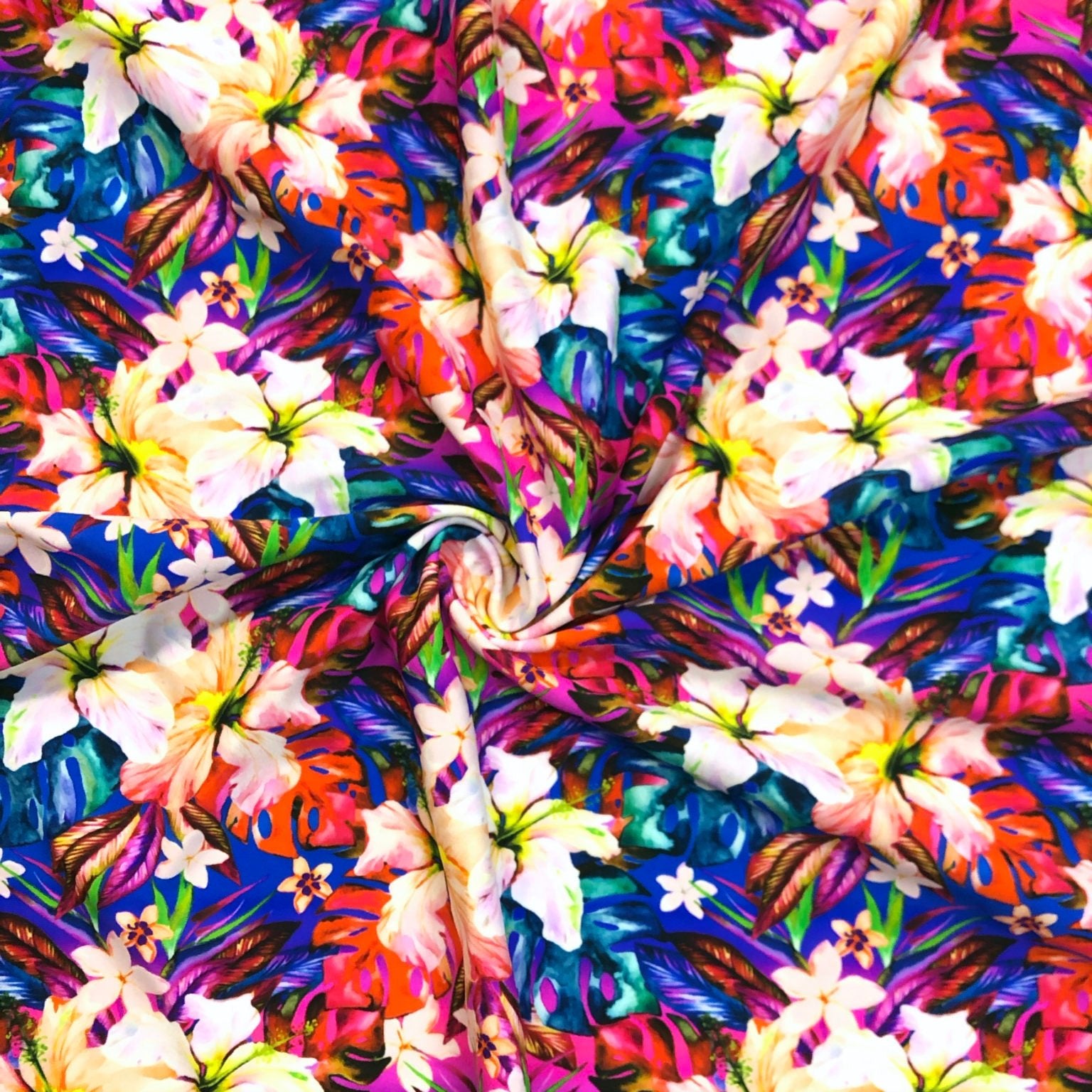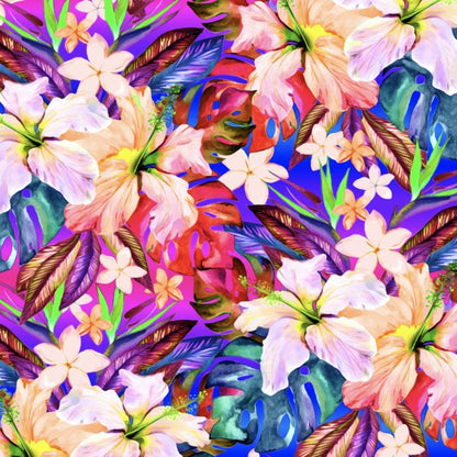 Recycled GREENLON® Nylon Spandex Tricot - Vivid Hibiscus Floral - 200gsm