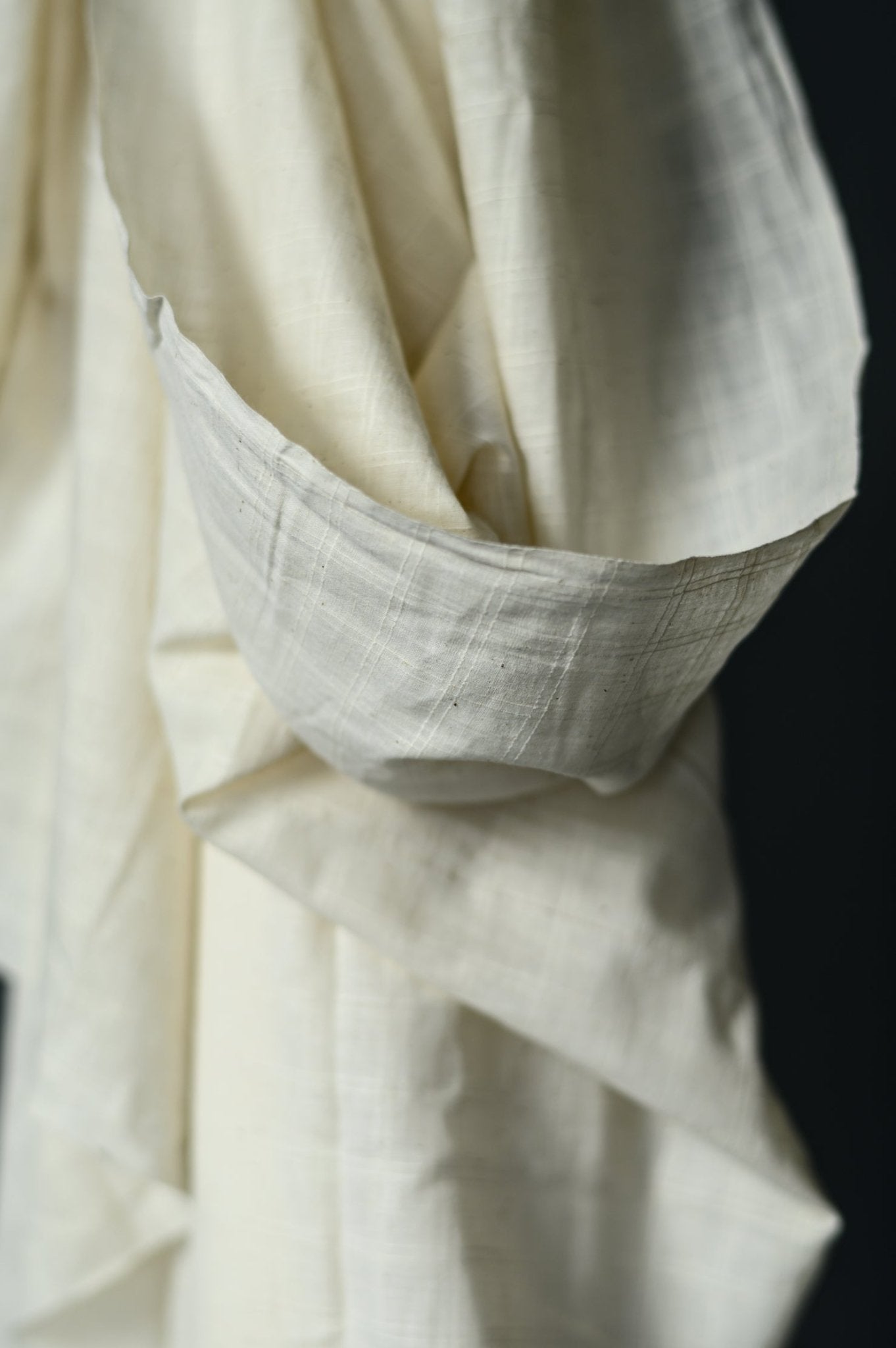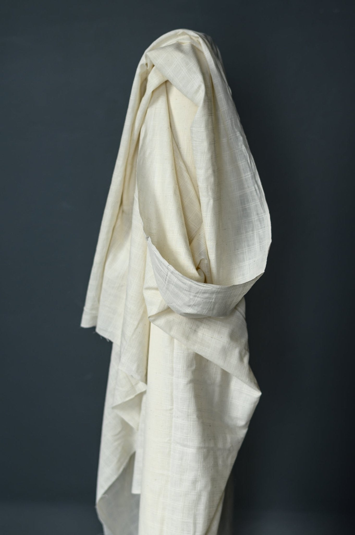 A subtle slightly raised check in ecru. This is fairly sheer so you’d need to wear something underneath or line it if you were making clothing. It would make a beautiful Edie top.