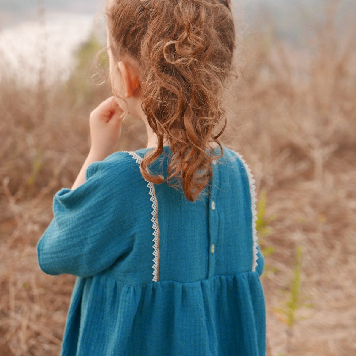 Blouse or dress. Loose fit, many options. 2 lengths: blouse or dress above the knee. Necklines: round or square. Short sleeves or long sleeves. Faced yoke with optional lace, piping or ladder hemstitch band. French seams on the sides and under the sleeves.