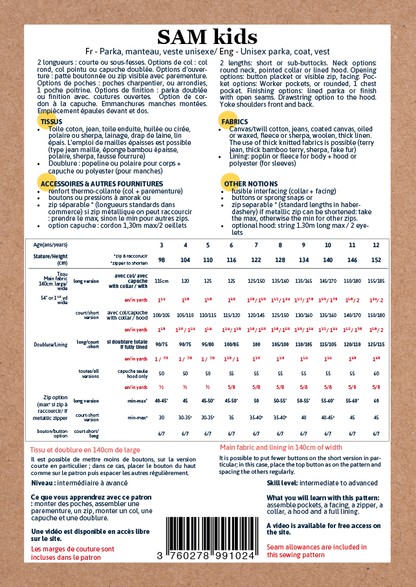 Sam Parka & Jacket Sewing Pattern - Kids Unisex 3/12Y - Ikatee