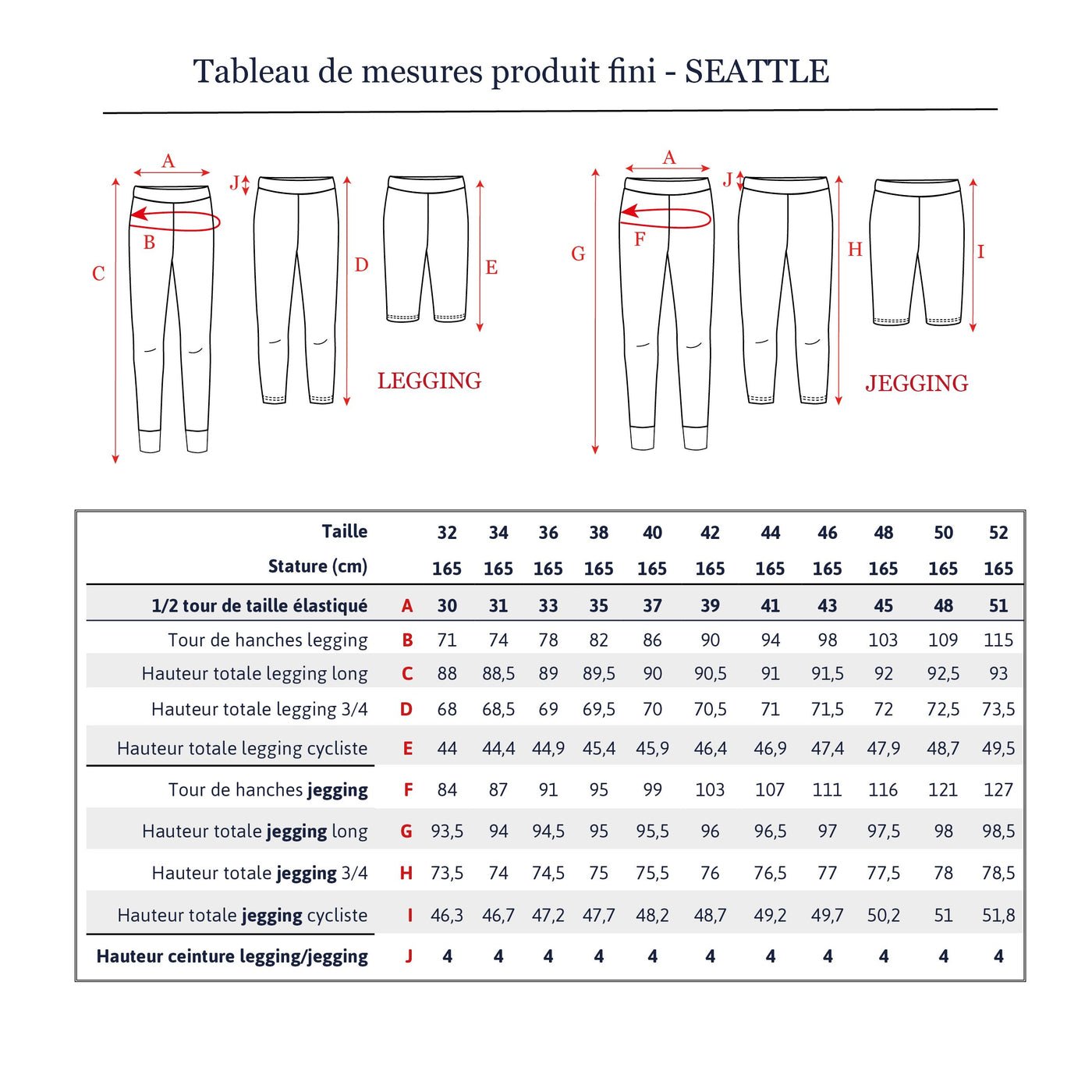 Leggings or jegging finished garment measurements: see in the pictures or here for Seattle & here for Seattle kids.