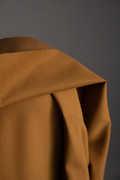 A warm tan Bedford cord that is very hardwearing. Bedford cord has faint lengthwise ridges without the raised pile of regular corduroy which gives the effect of a narrow stripe on the cloth.