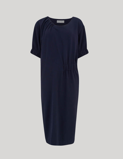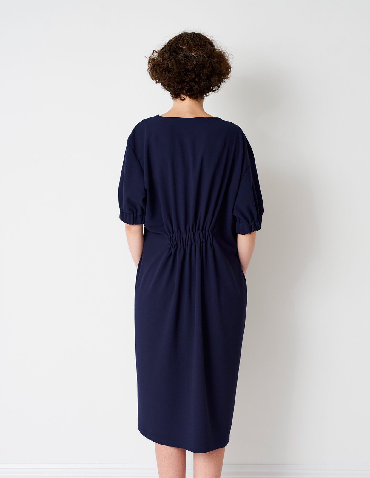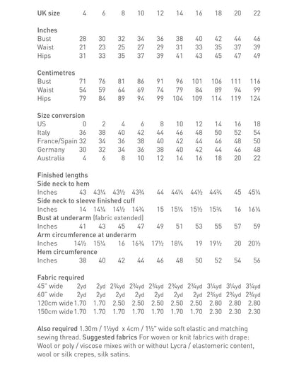 A sophisticated day to evening dress that's deceptively simple to make. However some dressmaking experience is required. The soft asymmetric gathers add definition and fluidity to this stylishly flattering design.