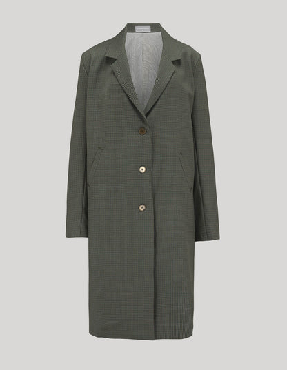 A classic single or double breasted coat with set-in two-piece sleeves and welt or patch pockets. The cuff is finished with a faux placket and button detail.