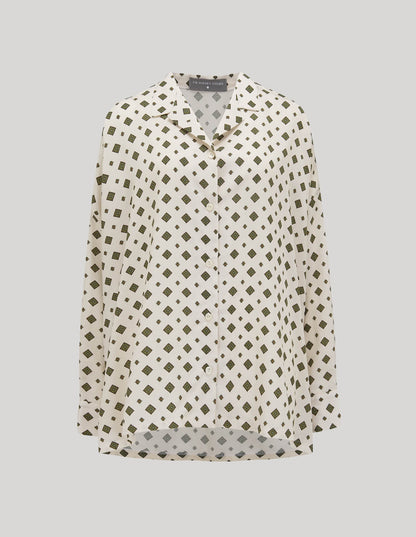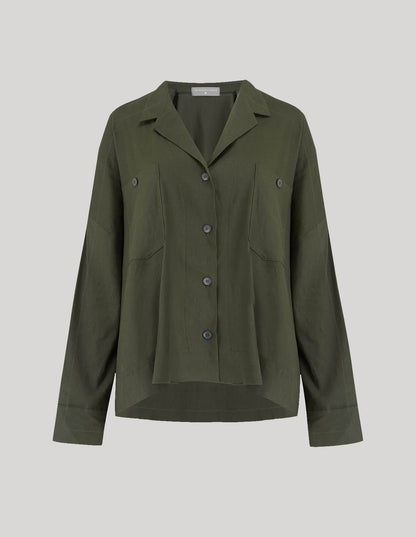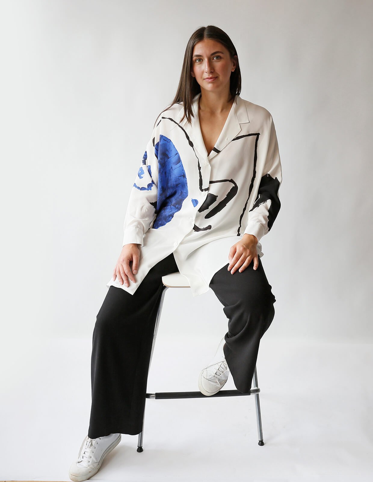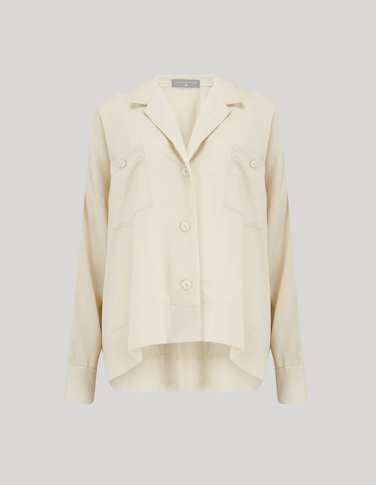 A generously oversized, all seasons shirt. The sleeves are finished with a cuff and placket detail.