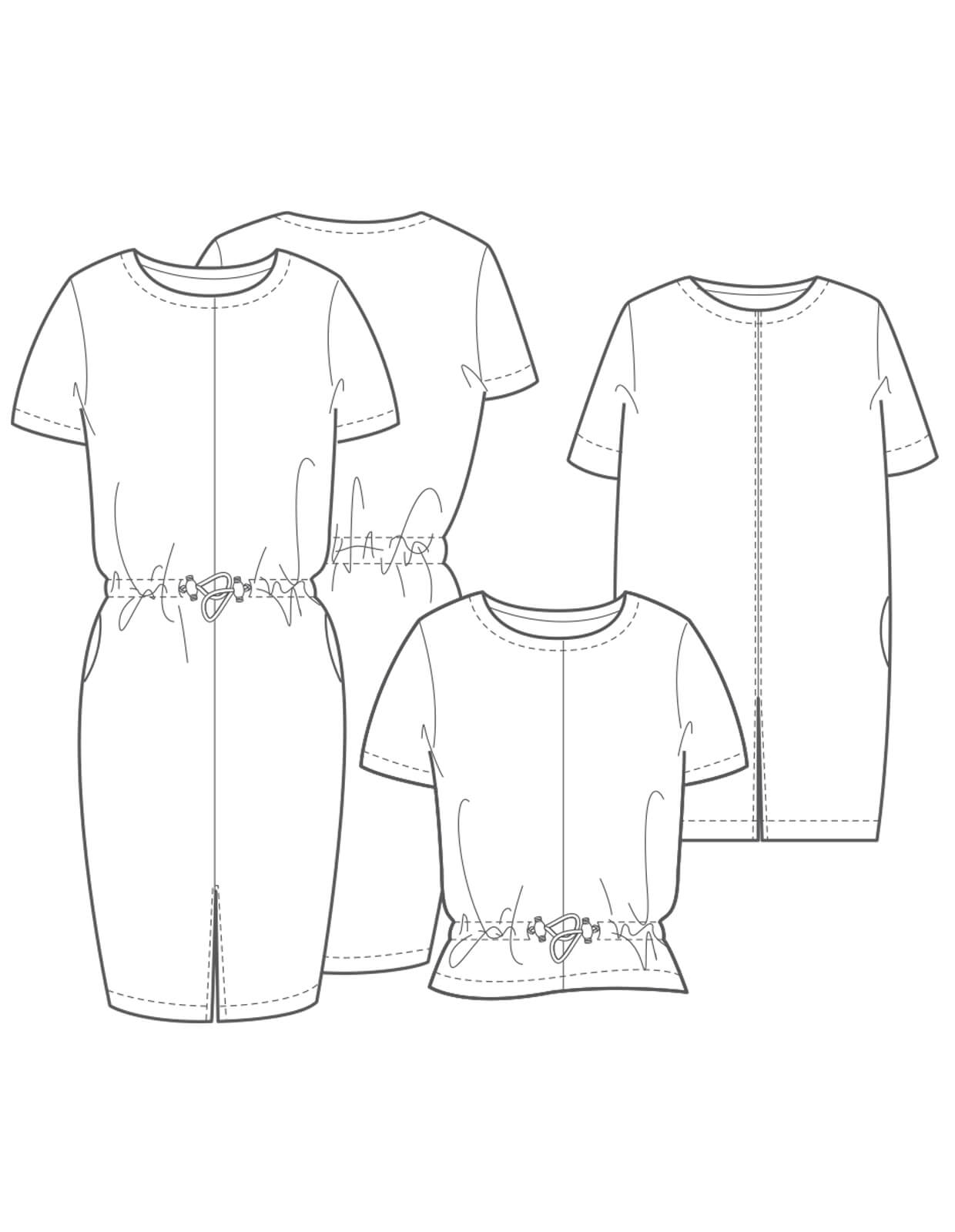 Instructions are given for the dress, tunic or top, with or without drawstring and optional front split detail.