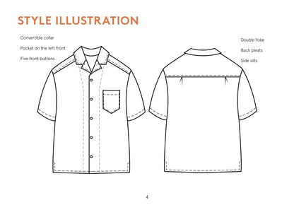Discover the Men's Tropical Shirt Sewing Pattern from Wardrobe by Me. This casual button-up shirt features a stylish short-sleeved design with a convertible collar, perfect for your summer wardrobe. This pattern is ideal for sewing enthusiasts looking to create comfortable yet fashionable clothing.