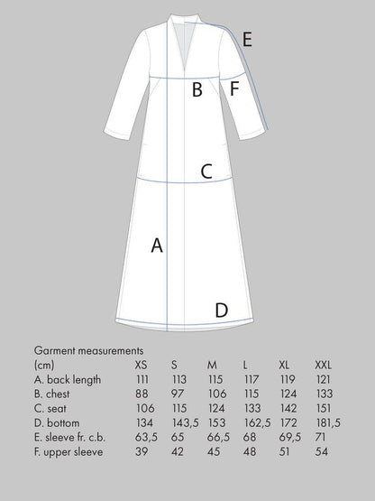 This is a multi-size pattern, including size XS-XXL. The pattern comes carefully packaged in an envelope together with step-by-step sewing instructions.